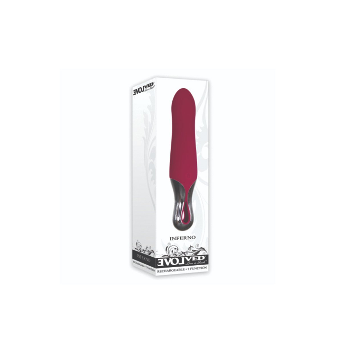 Este Bala Vibradora Inferno Evolved Vinotinto elegante tiene un mango cromado negro elegante que se siente como joyas en su mesilla de noche! Es pequeño a poco menos de cuatro pulgadas, pero tiene un golpe con 7 potentes velocidades y funciones para satisfacer profundamente sus zonas erógenas. Ideal para viajar y un ajuste perfecto para cualquier bolso, llevar su amuleto de la suerte con usted para el placer en el camino!
