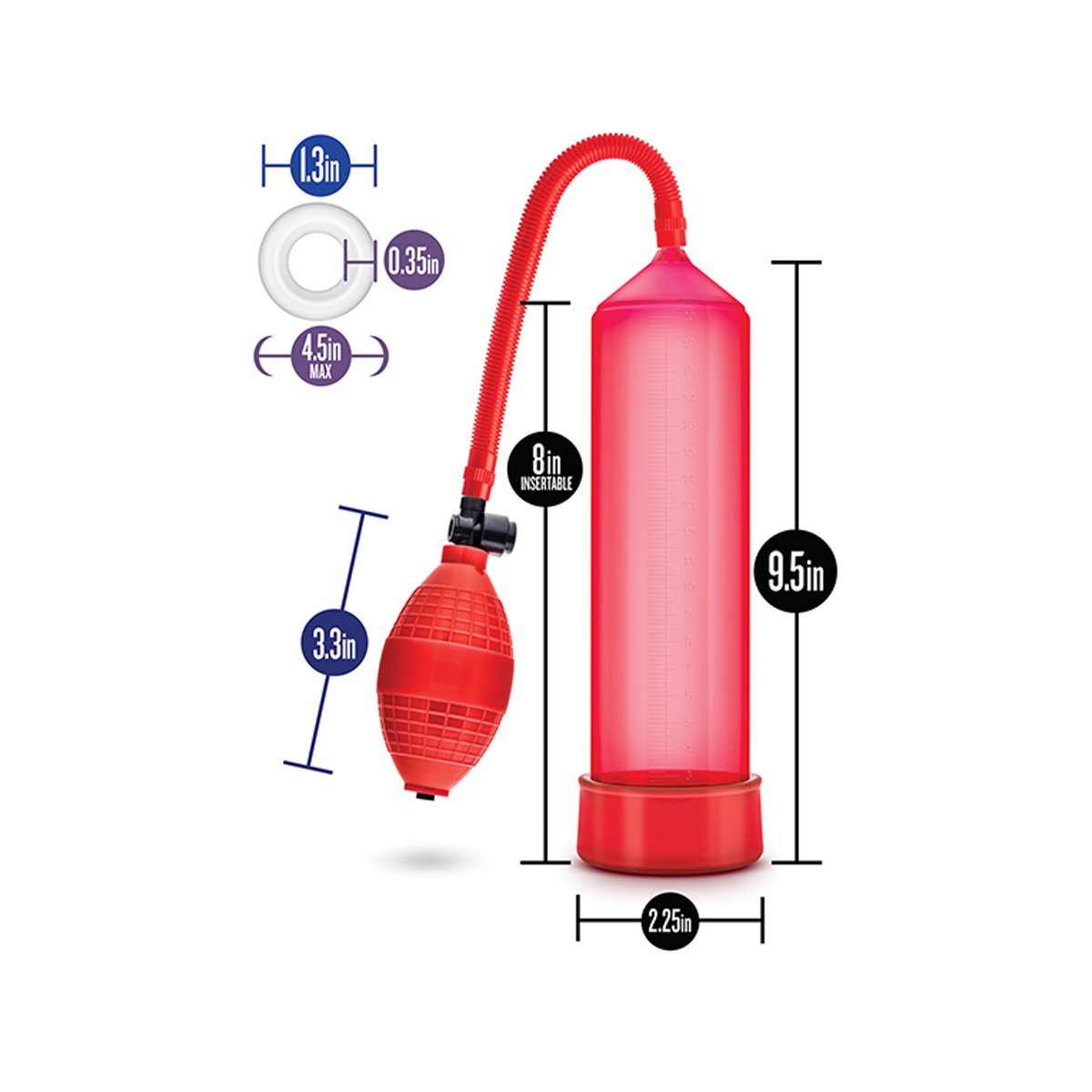 La Bomba de Vacío Blush Performance Vx101 Roja es una bomba de grado médico, con un conector y una válvula de liberación rápida. Diseñada para garantizar su seguridad. Incluye una funda de cilindro de PVC suave y no poroso para una sensación cómoda y una mayor succión. El cilindro está hecho de plástico resistente a los impactos y tiene el tamaño adecuado para la mayoría. Fácil de limpiar.