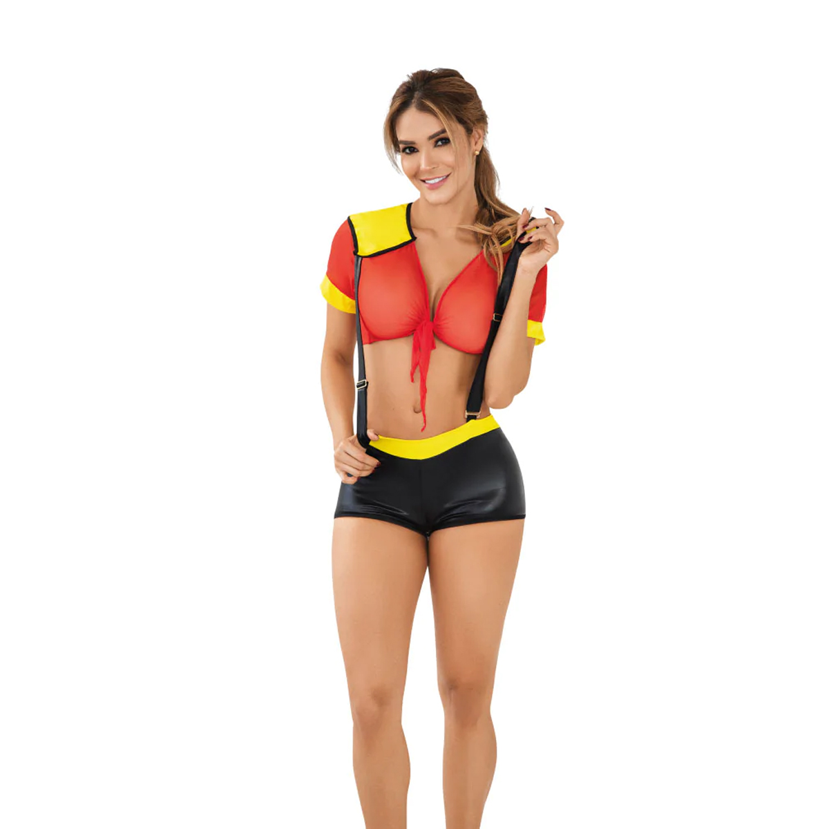 Lo más sensual del Disfraz de Bombera S/M Rojo/Amarillo Lerot 33271 es la transparencia que deja ver una de tus partes más eróticas. El panty con cargaderas te hará sentir una verdadera oficial del cuerpo de bomberos. Deja volar tu imaginación y que se encienda el fuego.