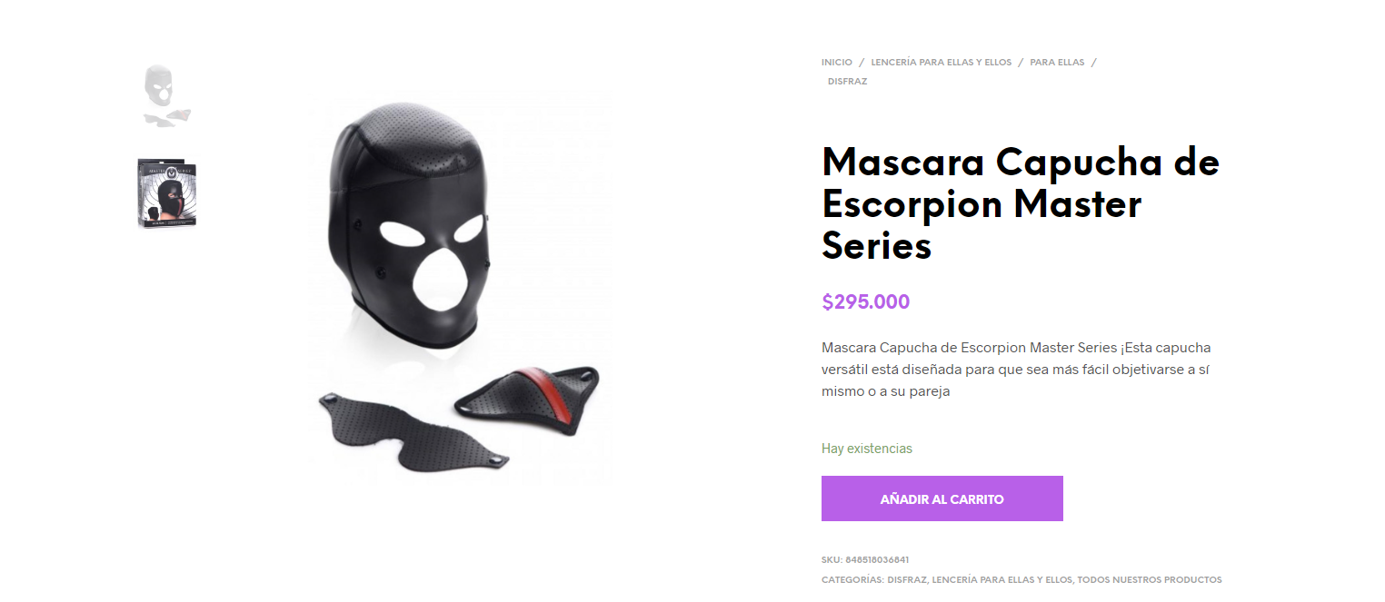 Mascara Capucha de Escorpion Master Series ¡Esta capucha versátil está diseñada para que sea más fácil objetivarse a sí mismo o a su pareja, perfecto para sumisos y practicar el arte de la humillación y la sumisión! La capucha Scorpion está hecha con materiales cómodos y presenta un diseño de tres orificios para los ojos, la nariz y la boca. Personaliza esta capucha y niega a tu sumiso la vista y la voz con la venda para los ojos y la cubierta para la boca incluidas, ¡perfecto para intensificar tu juego de rol de mazmorra!