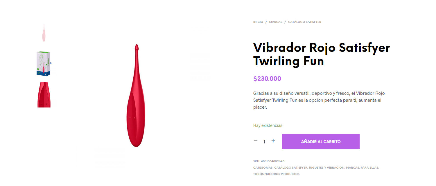 Gracias a su diseño versátil, deportivo y fresco, el Vibrador Rojo Satisfyer Twirling Fun es la opción perfecta para ti, aumenta el placer. Este vibrador de punto utiliza una parte superior pequeña, giratoria y vibrante para una estimulación dirigida, adecuada para todas y cada una de las zonas erógenas. Construido con un cuerpo y una punta firmes, el TWIRLING FUN tiene una varilla no centralizada sobre el motor para impulsar la punta alrededor de un eje.