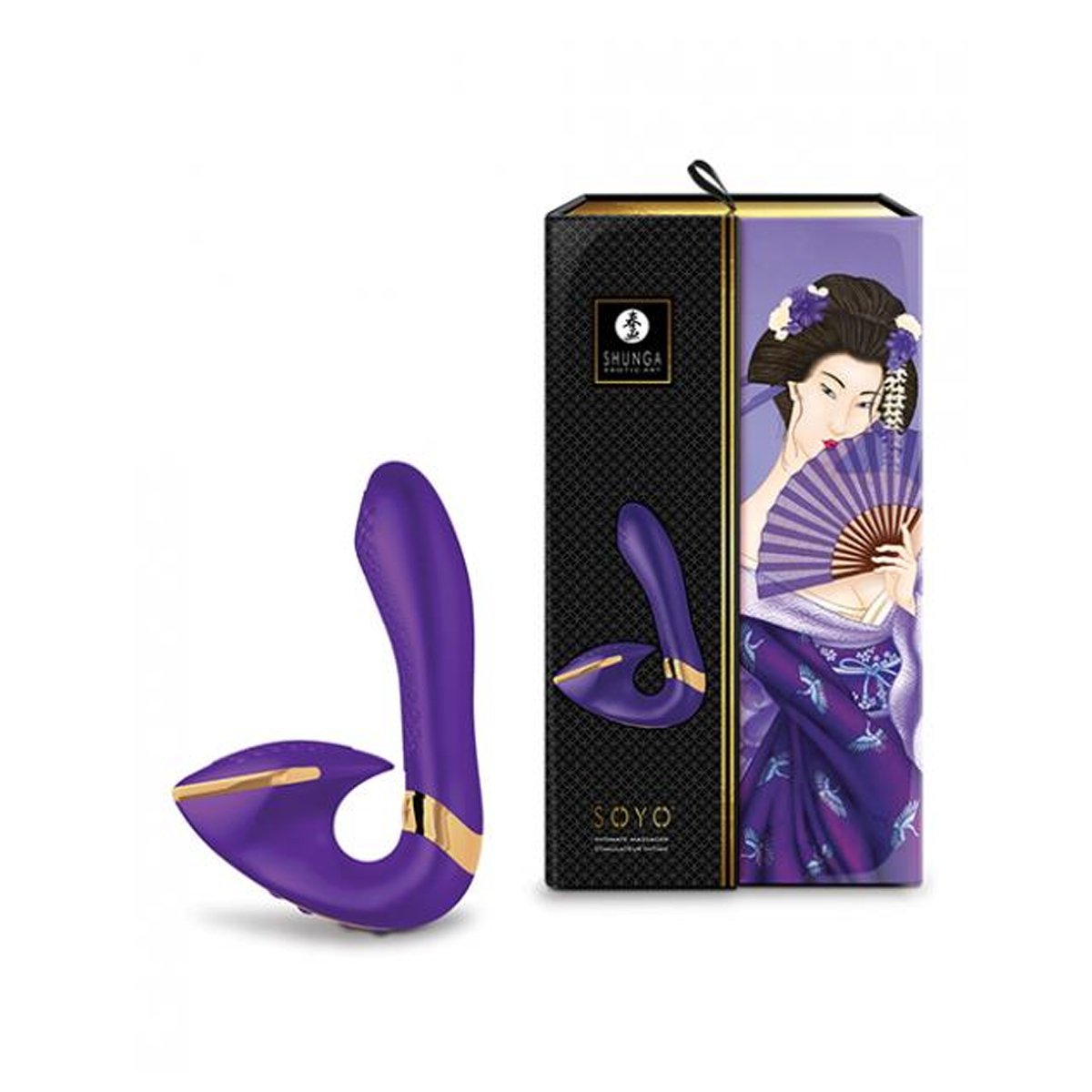 ¡Para la mujer que lo quiere todo! Vibrador Shunga Soyo Purpura Doble Estimulación, con su cuidado diseño y potentes vibraciones, te abrirá las puertas del placer multisensorial. ¡Bienvenido al mundo de los orgasmos múltiples! Sus configuraciones de intensidad distintivas entre sus cámaras inferior y superior le darán un control perfecto sobre su disfrute al enfocarse simultáneamente en el clítoris, los labios, el perineo y el punto G.